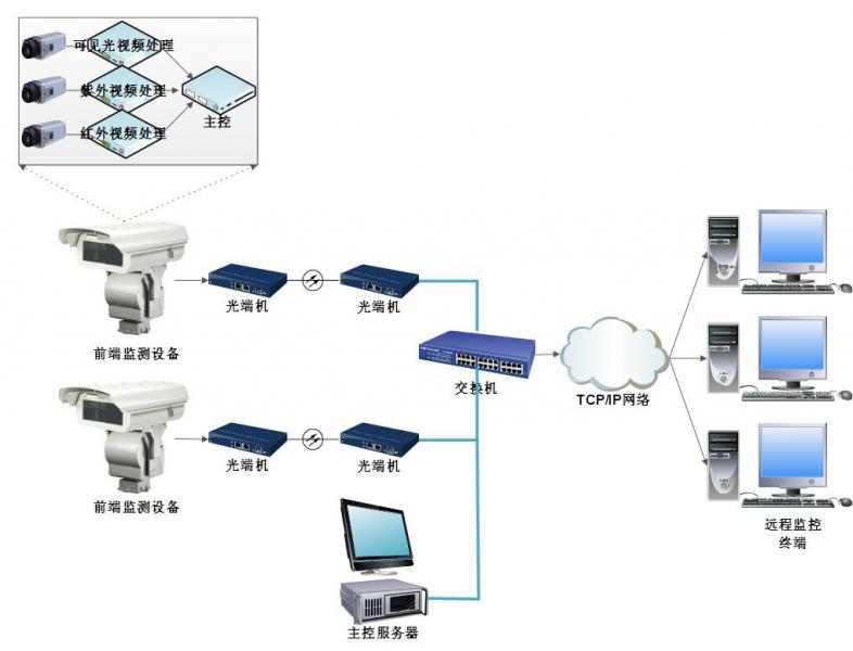 系統(tǒng)可實(shí)現(xiàn)對(duì)紫外、紅外和可見(jiàn)光圖像的遠(yuǎn)程傳輸和監(jiān)控, 超溫、電暈超標(biāo)報(bào)警提示。通過(guò)遠(yuǎn)程對(duì)攝像機(jī)控制,預(yù)制定位,遠(yuǎn)程切換,自動(dòng)巡視等。能夠支持多場(chǎng)所的中央監(jiān)控,不受地理限制,多個(gè)用戶(hù)可同時(shí)監(jiān)控同一前端,發(fā)生異常自動(dòng)抓拍,同時(shí)自動(dòng)啟動(dòng)錄像機(jī),具有很好的兼容性及可擴(kuò)展性。提高運(yùn)行人員對(duì)設(shè)備缺陷的識(shí)別能力和預(yù)見(jiàn)性。
